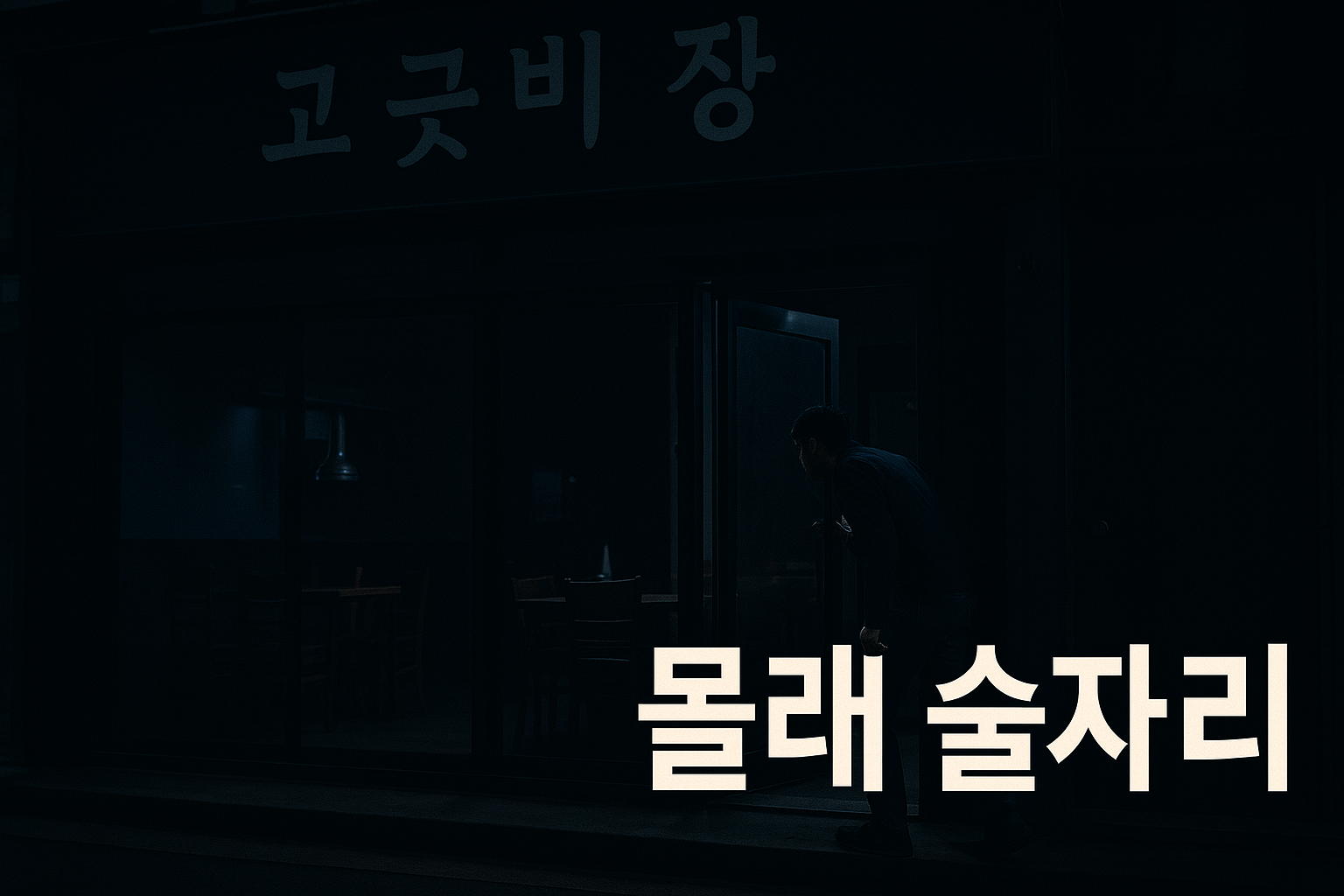 문틈 사이로 내부를 살핀 그는 아무도 없다는 것을 확인하고, 호기심 반, 장난 반으로 조심스레 가게 안으로 들어갔습니다. 식당 내부에는 아직 정리되지 않은 테이블 위에 소주 한 병과 일부 남은 안주가 놓여 있었습니다.
